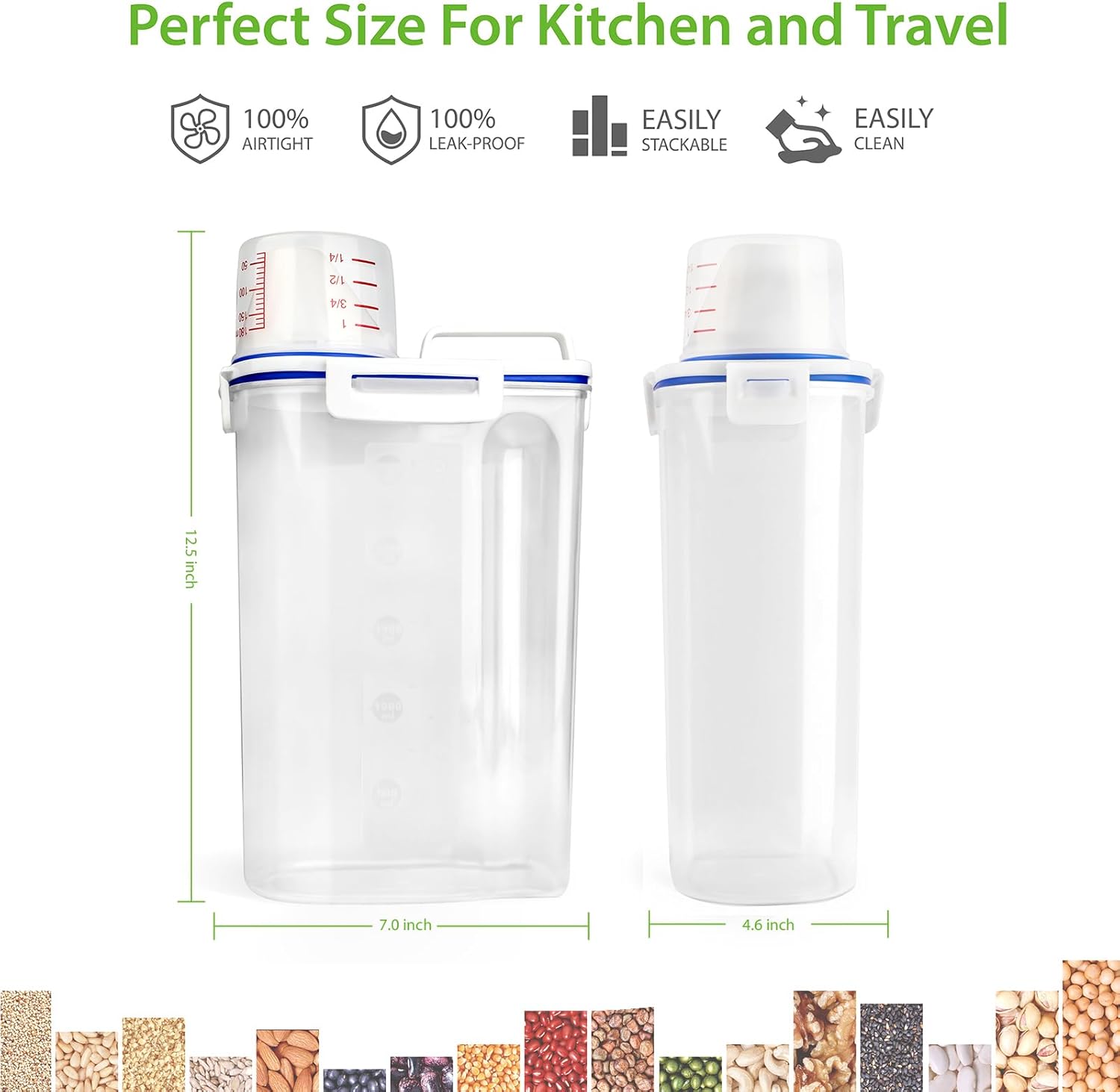 - SMART KITCHEN STORAGE CONTAINER: make your pantry perfectly organized with this smart container. Suitable for Beans, Flour, Sugar, Coffee, Rice, Nuts, Snacks, Pet Food and More (Note: Container storage capacity varies by food. Only store about 3 lbs of pet food or flour.)