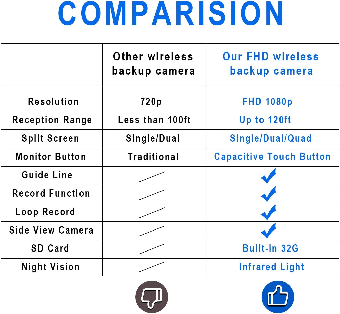 - 【Upgrade Digital Wireless Signal】 Adopt HDCVI 4th Generation Digital Signal, 100ft anti-interference no delay, applicable for vehicles within 65 feet vehicle(12-24V), give you a stable and clear monitor of road condition, be your reliable assistant. The cameras are not battery camera and need wires to get power and work.