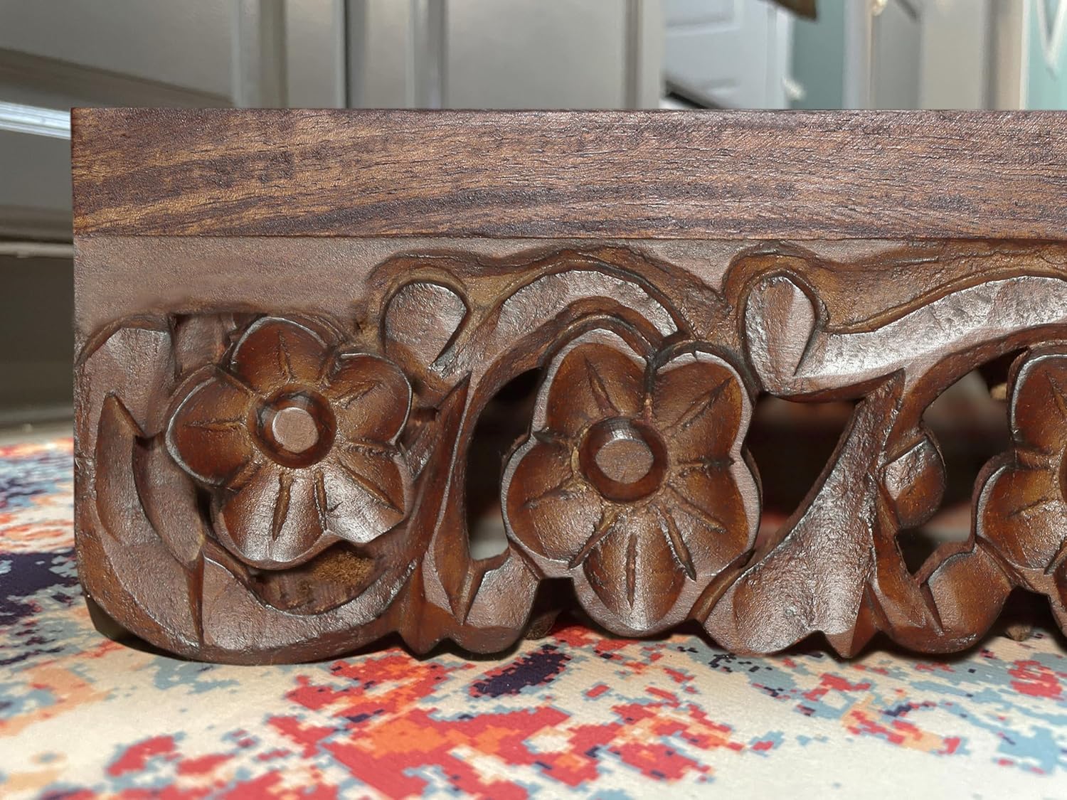 Elevated Pet Feeder for Dogs and Cats - The Bali Carved Wood Pet Feeding Stand with Two Stainless Steel Bowls - Three Heights Adjustable Raised Dog Bowl - Food Water Pet Feeding Station - IRONGATE