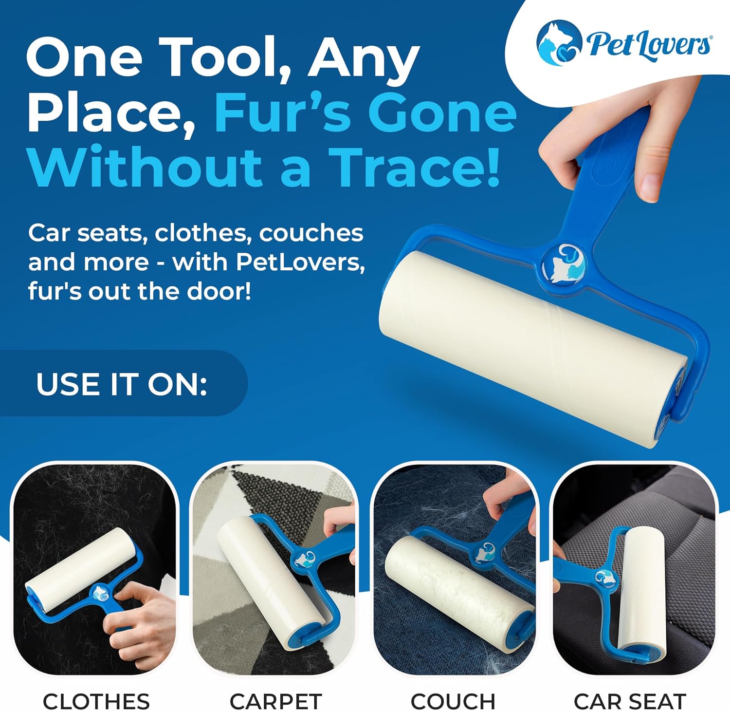 - With PetLovers extra sticky adhesive, your lint roller doubles as a grooming tool that noticeably removes more hair, dust, and lint from your pets, furniture, clothing, and carpet.