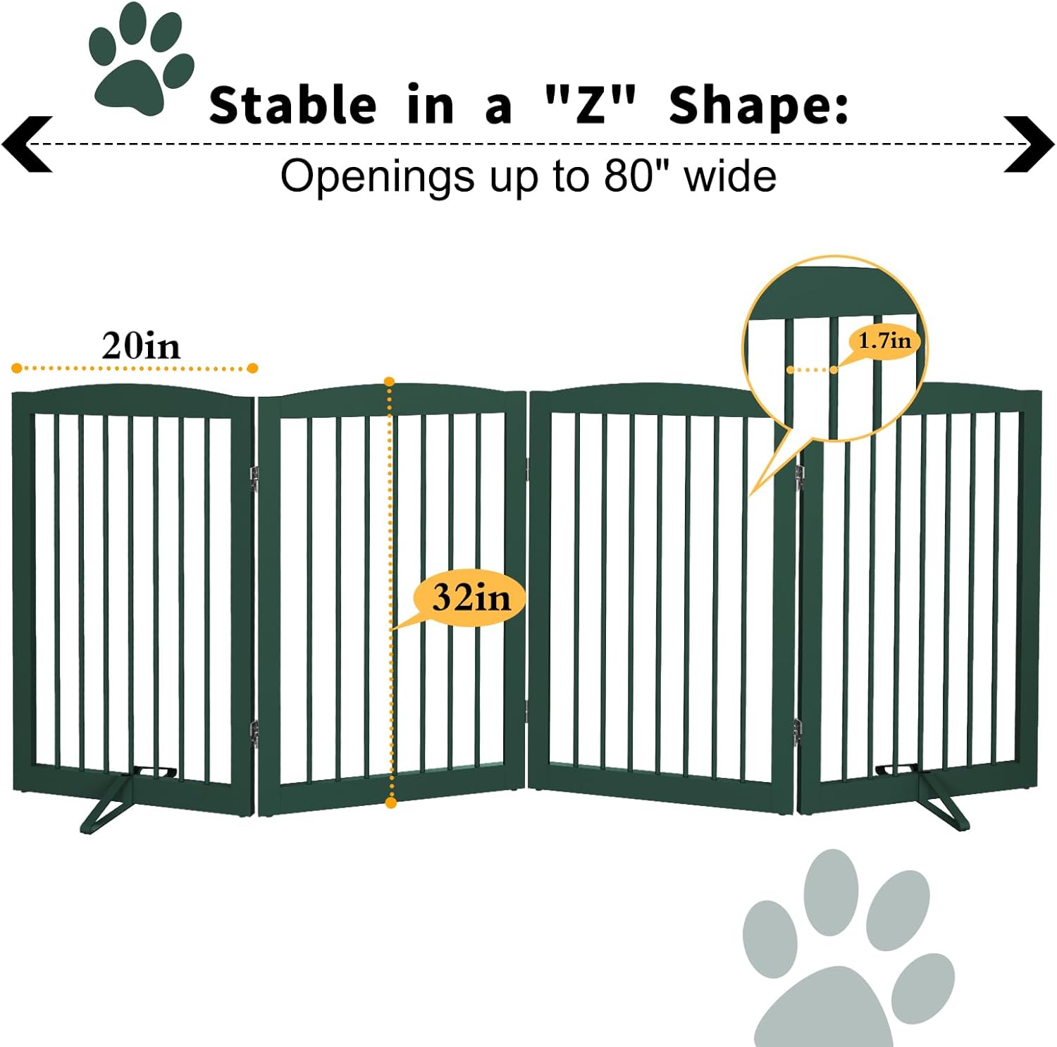 Freestanding Pet Gate for Dogs, Indoor Wooden Dog Gate for House, Foldable Dog Gate for Doorway, Stair, Step Over Pet Puppy Safety Fence Tall, 80 Inch Wide, 4 Panels 32", Green