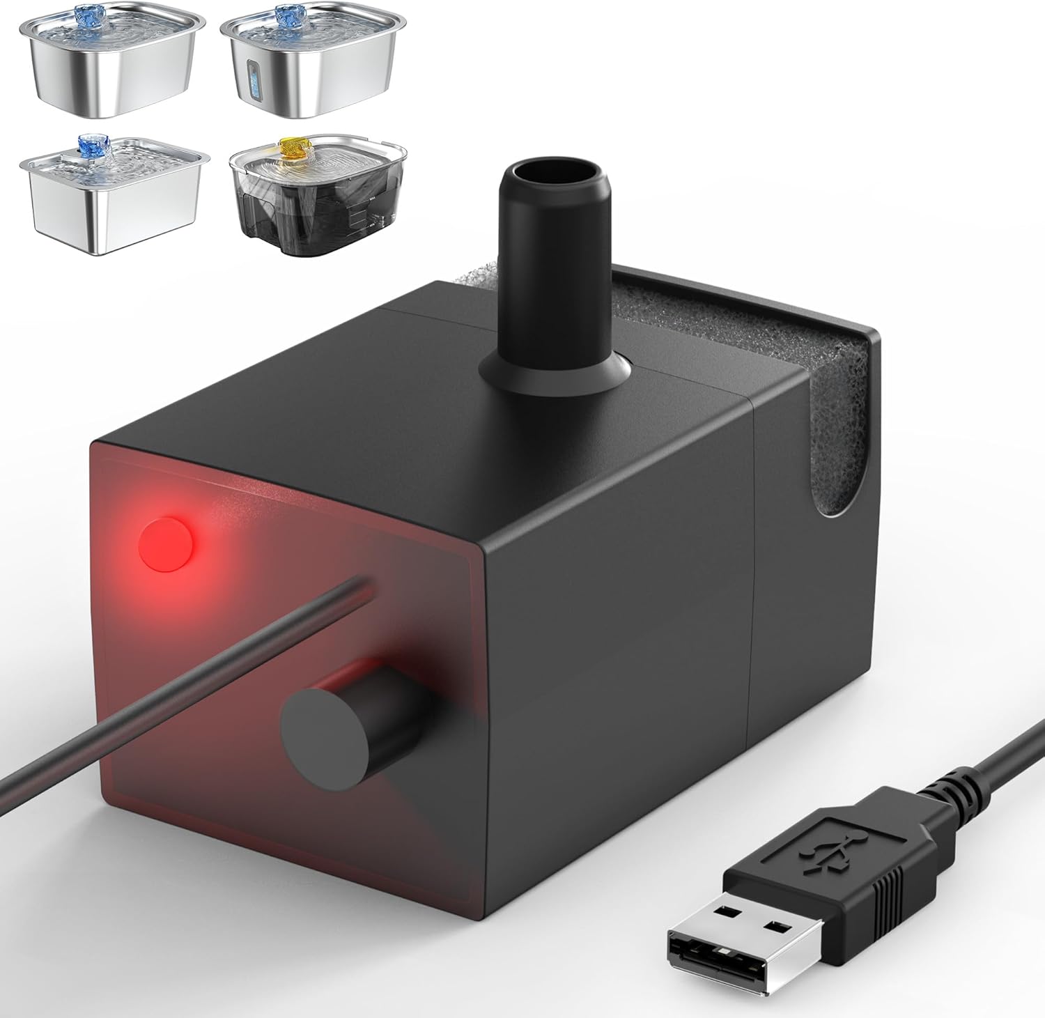 - Low Water Level Alert: The built-in sensor automatically shuts off the pump when the water level in the pet fountain drops too low. A red light will illuminate, reminding you to refill the water. This feature ensures safety and helps extend the pump's lifespan