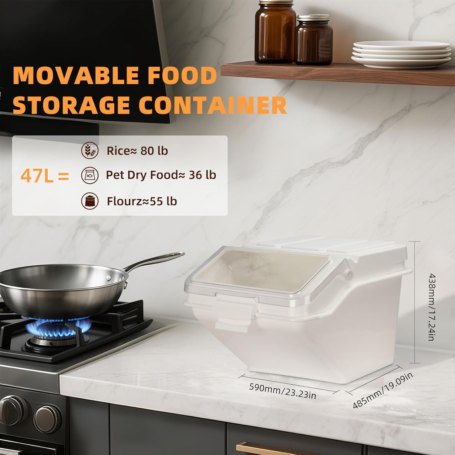 - 4. 【Tiered Capacity & Flexible Use】Available in 3 optimized sizes:10L (holds ~4.5kg / 10lb flour)24L (holds ~11kg / 24lb flour)47L (fits standard 25kg/55lb flour sacks*).Perfect for household pantries to commercial kitchens – scales seamlessly with your storage needs.