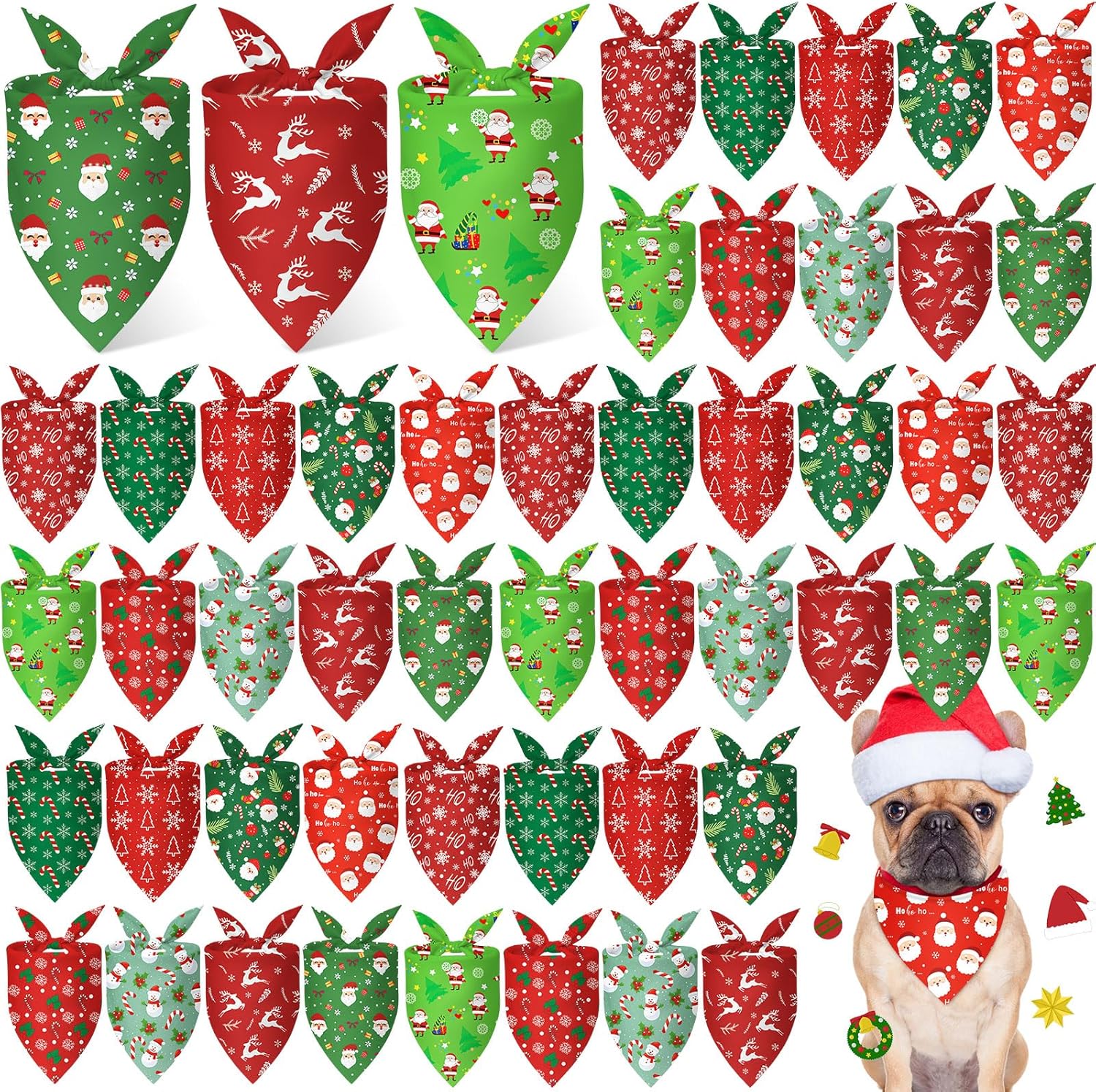 - Sufficient Quantity: there are 50 pieces Christmas bandanas for dogs in 10 different designs, 5 pieces each style, enough quantity and various styles can meet your pet's christmas decoration needs and replacement or share with your family and friends who have lovely pets